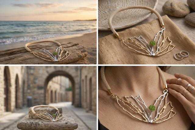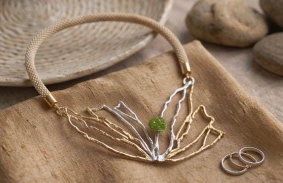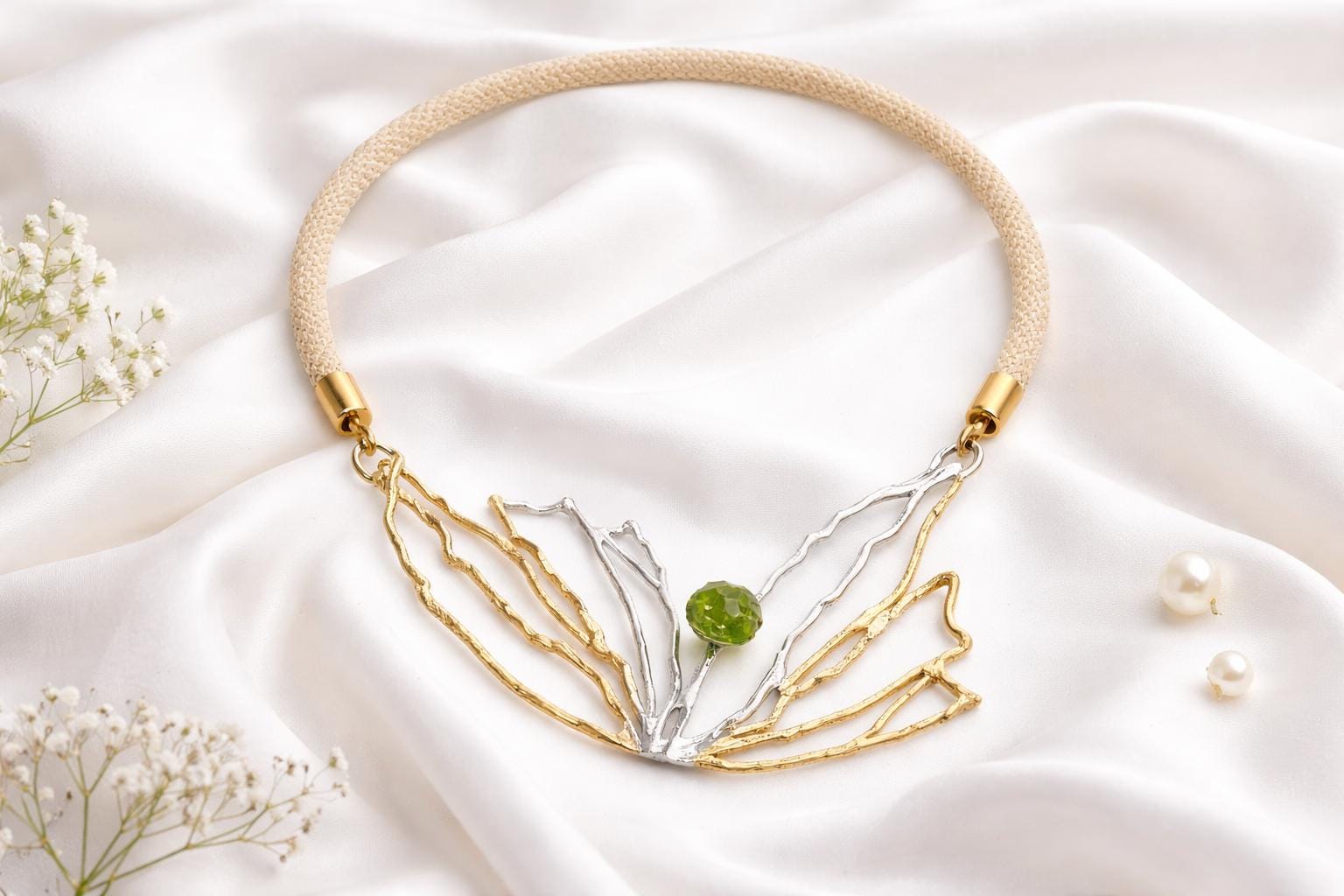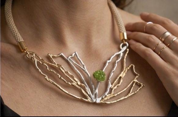Collar artesanal de plata y baño dorado en degrade,para mujer-joyeria hecha a mano regalo elegante