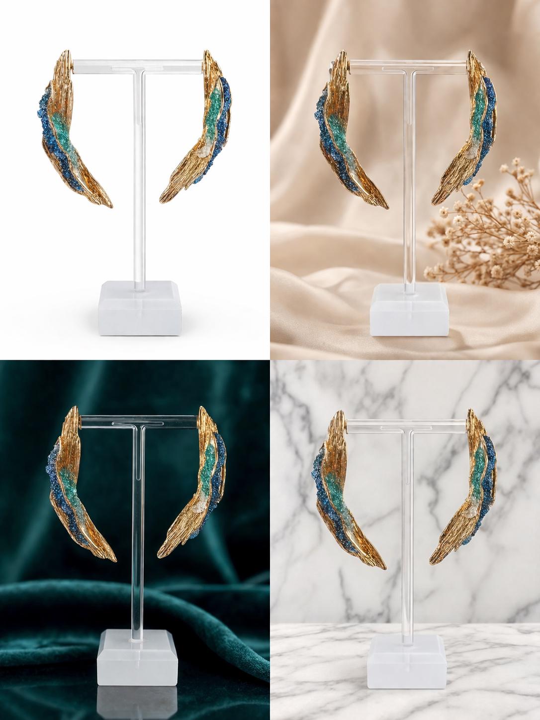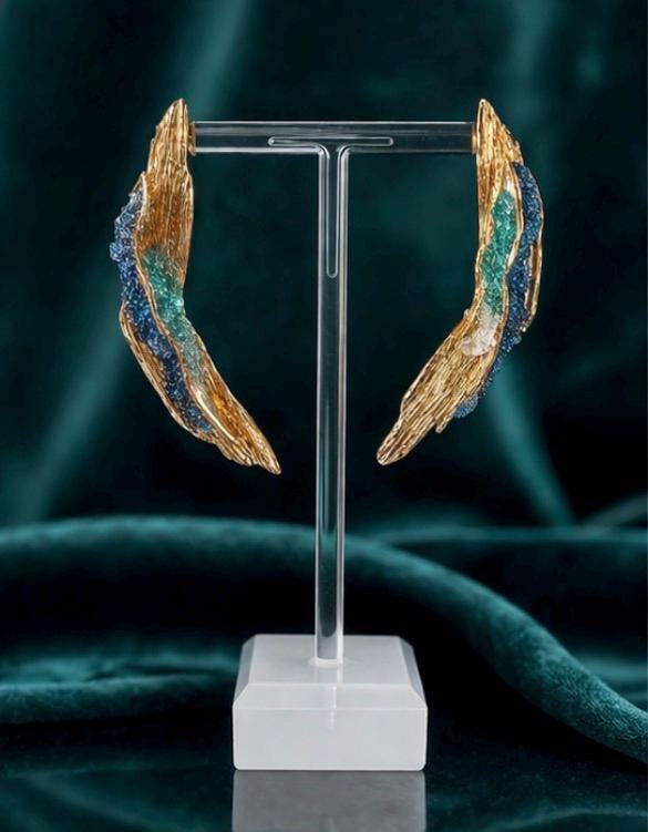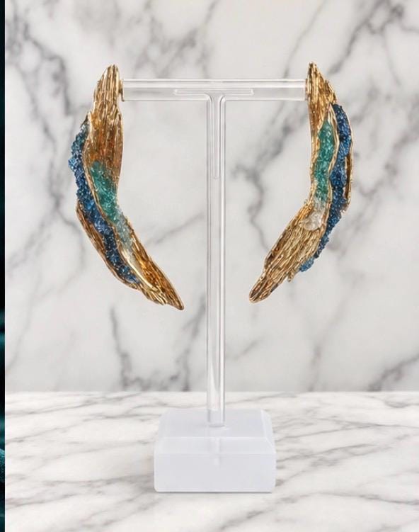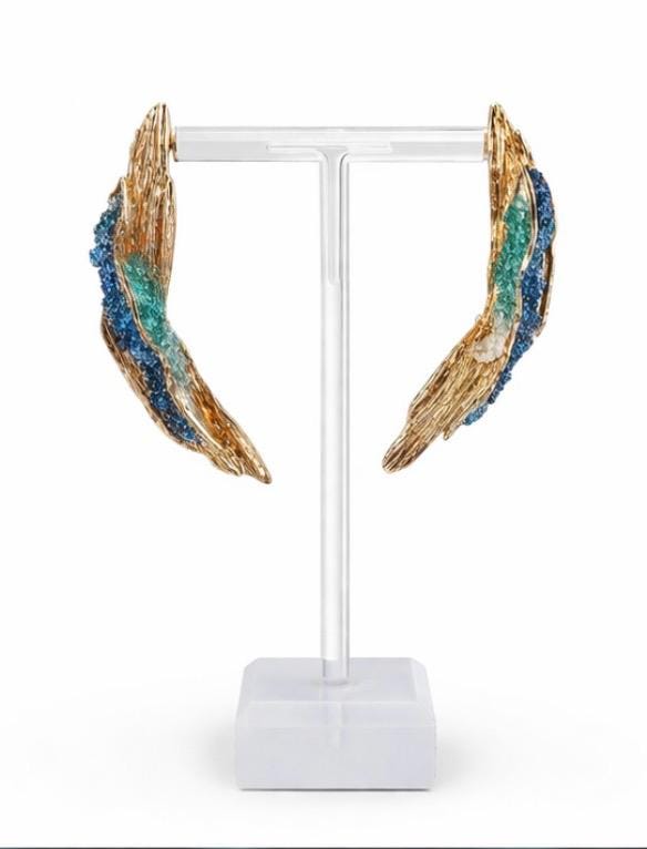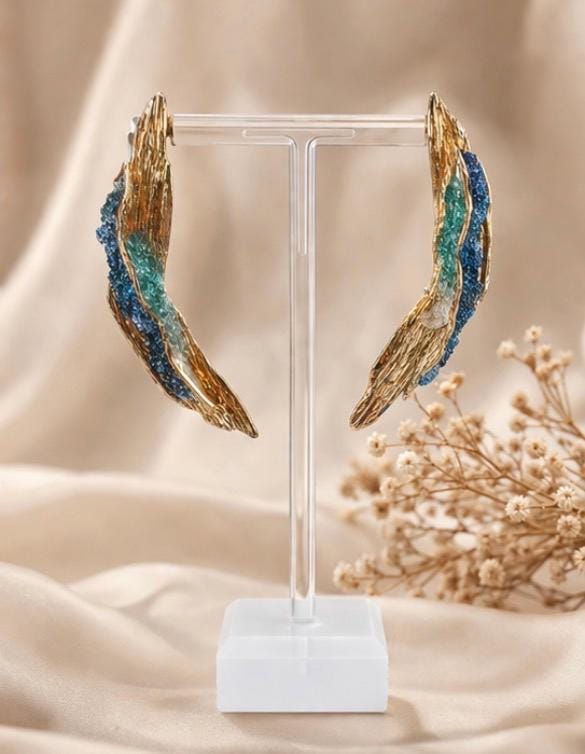Pieza elavorada a mano,con tonos plata y dorado,con un detalle de aguamarina y cuarzo natural-diseño ligero y elegante ,complemento perfecto para ocosiones especiales.Para mujeres que buscan,una joya diferente.