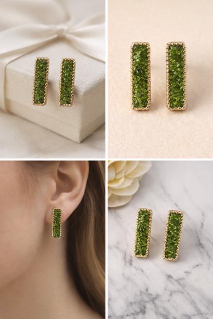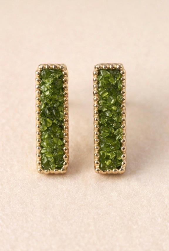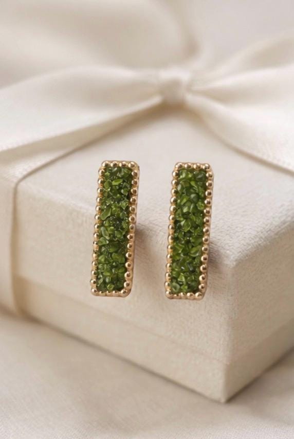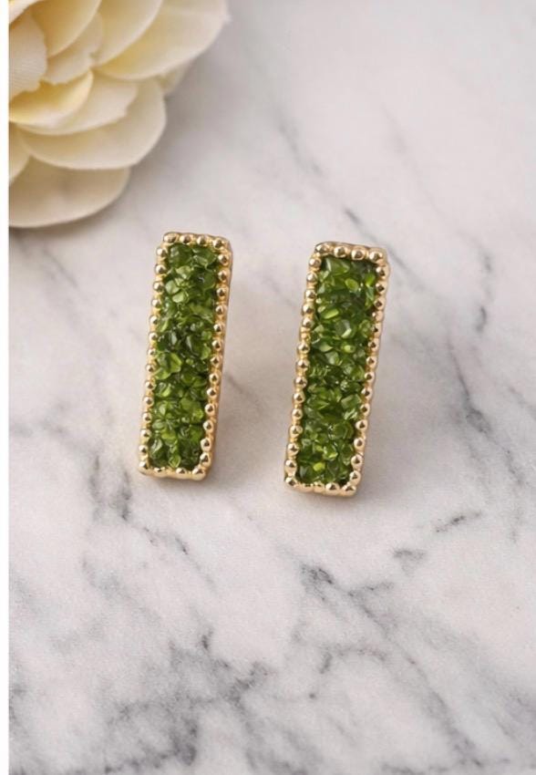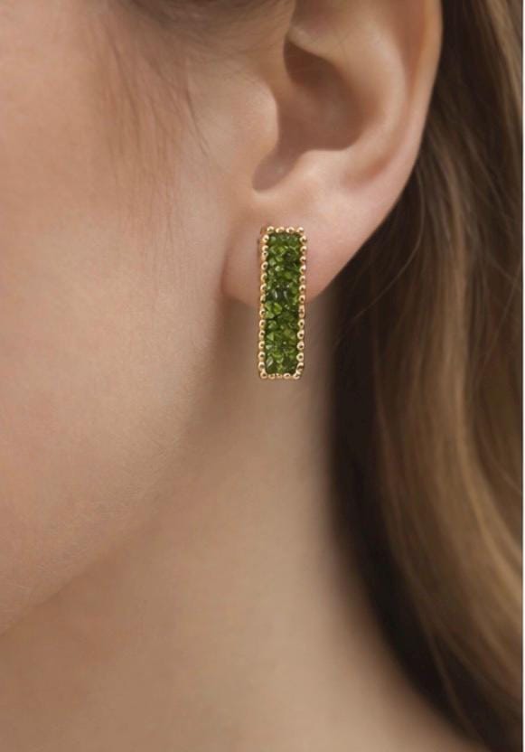 Pendiente rectangular con peridoto,hechos en plata con un baño dorado,perfectos para un look elegante y sofisticado.Un detalle unico para regalar o darte un capricho.