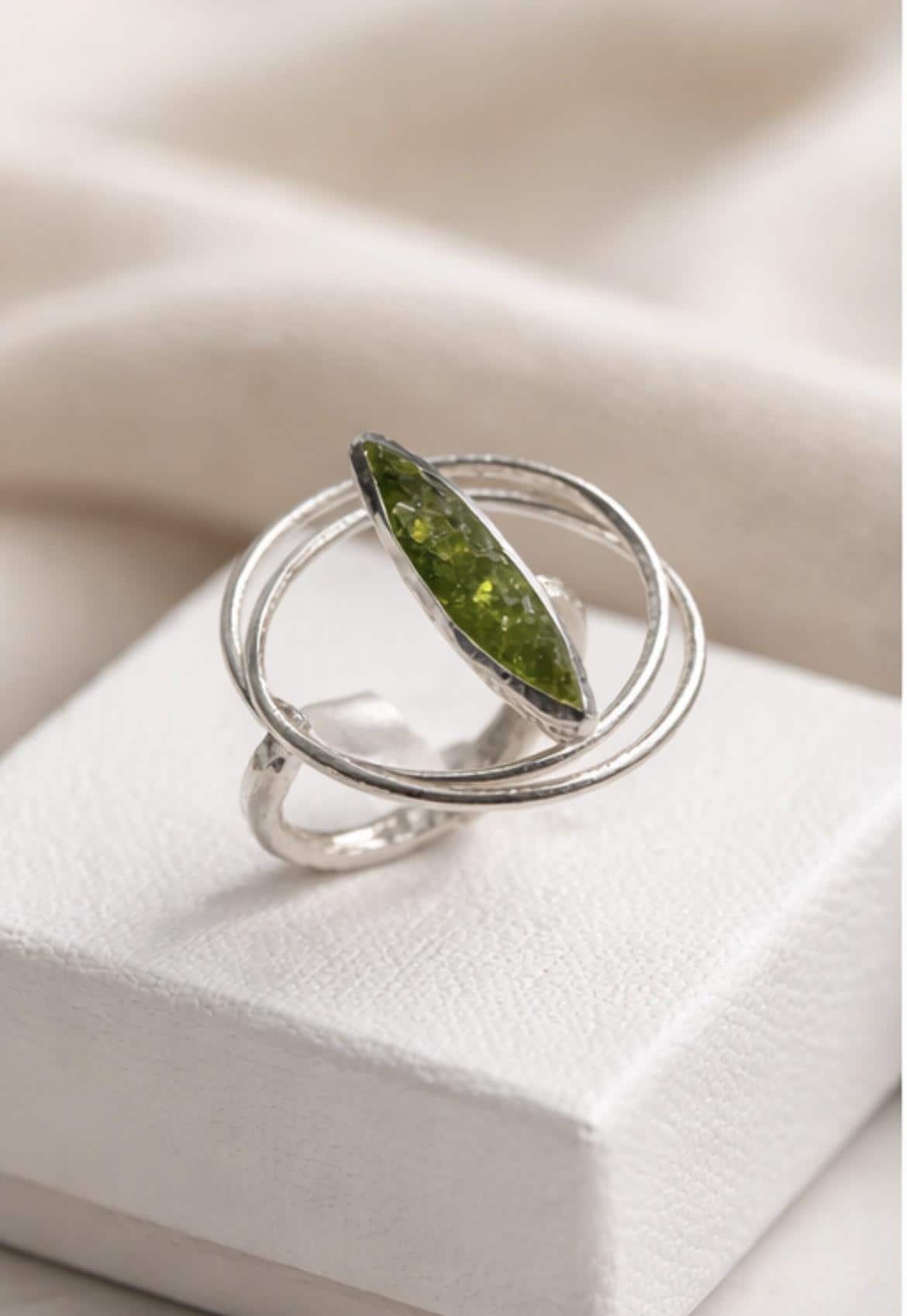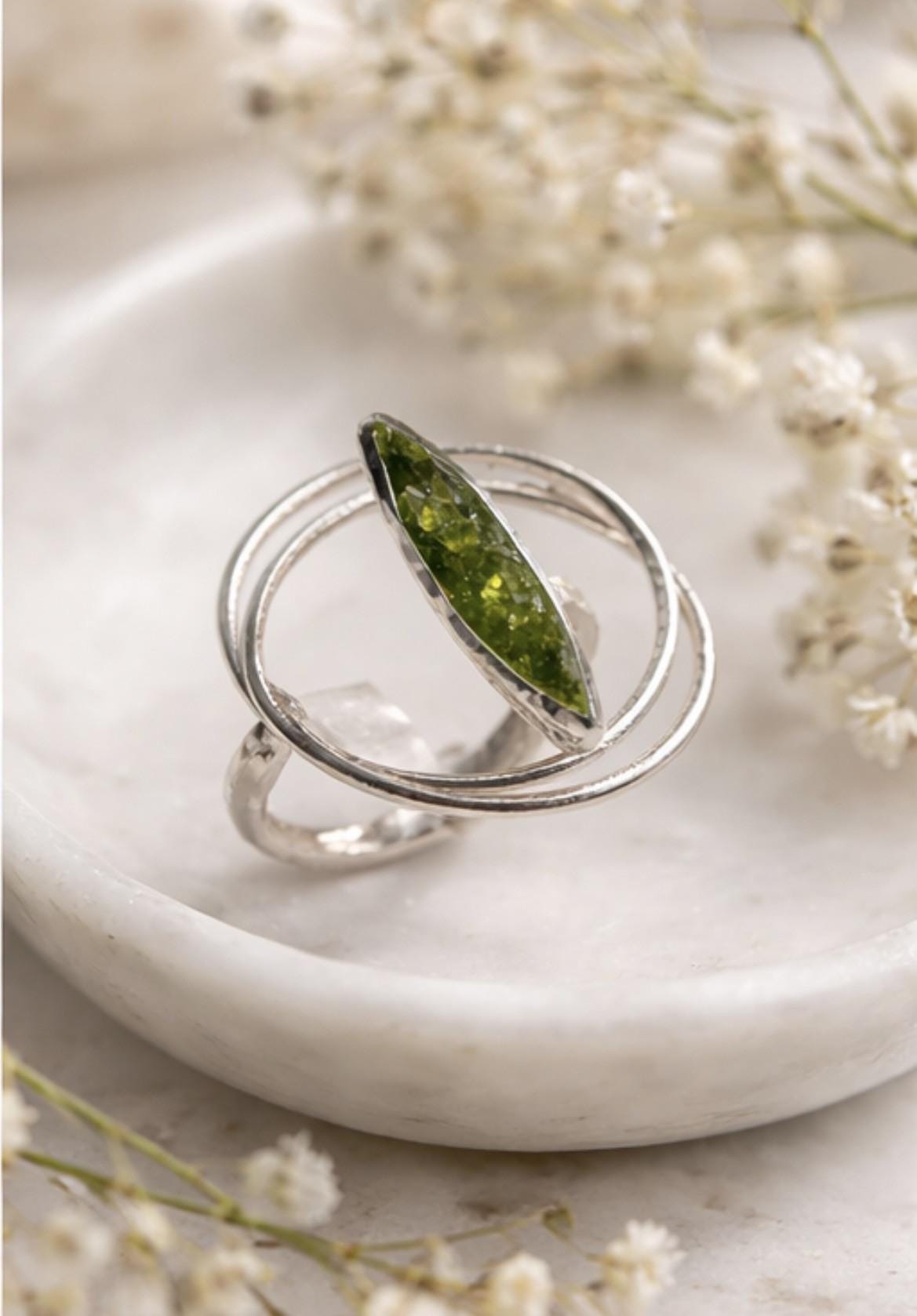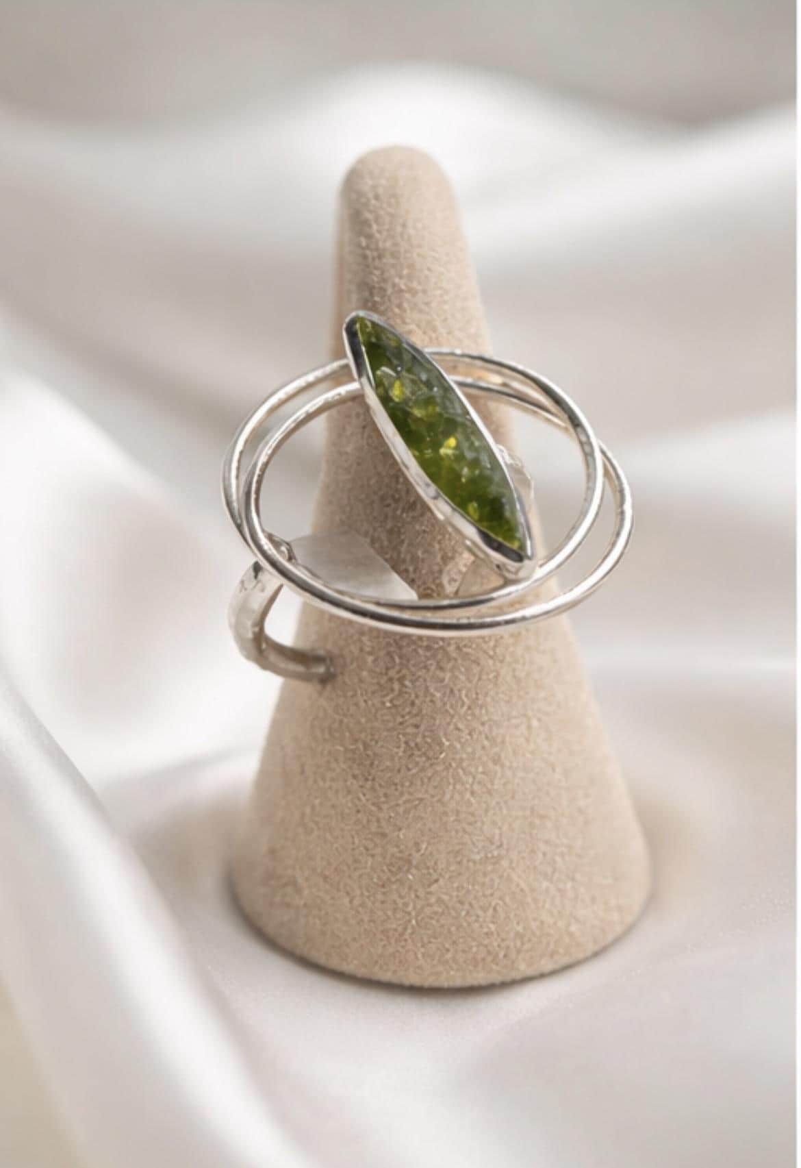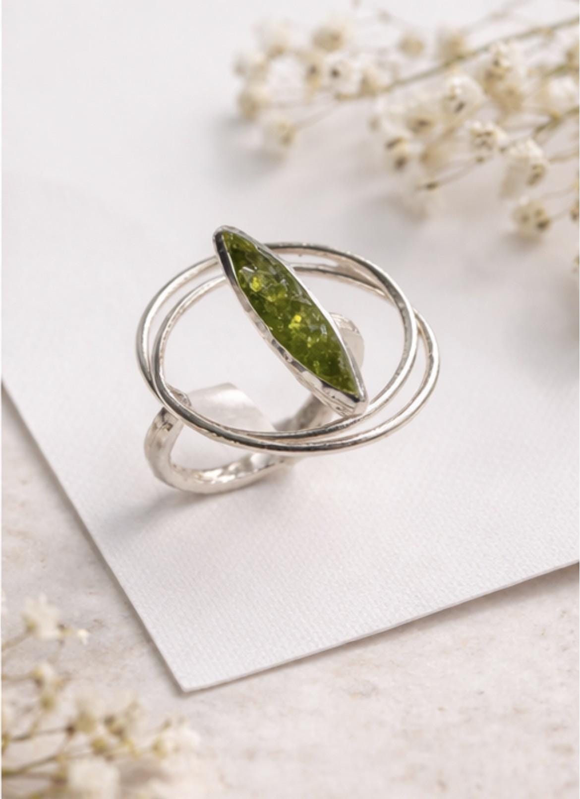 Anillo ajustable de plata ,con peridoto(olivina) hecho a mano-Su diseño moderno y ligero lo hace perfecto para su uso diario o para ocasiones especiales-Una pieza unica que combina elegancia y estilo personal-Regalo para mujer